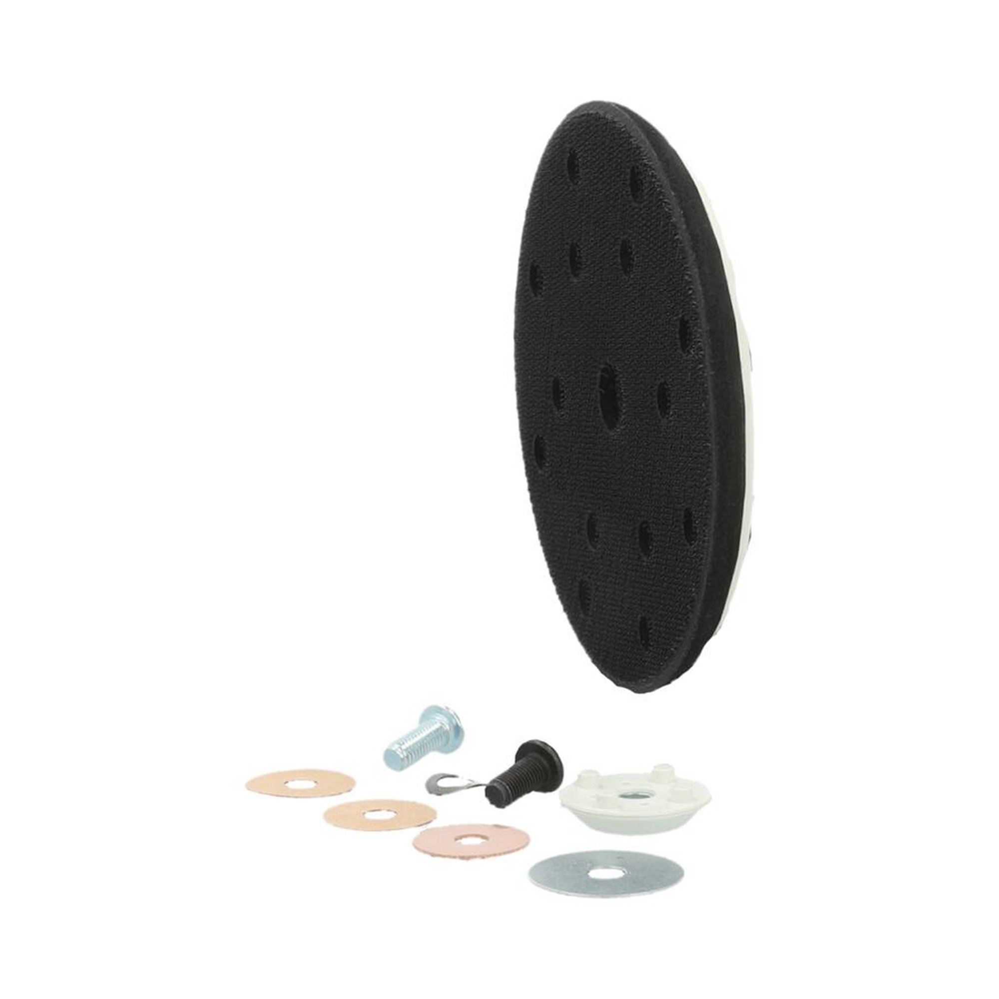 Hochwertiger 150mm Stützteller mit Klettverschluss für vielseitige Schleifarbeiten in Industrie und Handwerk, inklusive Befestigungssystem und kompatibel mit verschiedensten Materialien.,