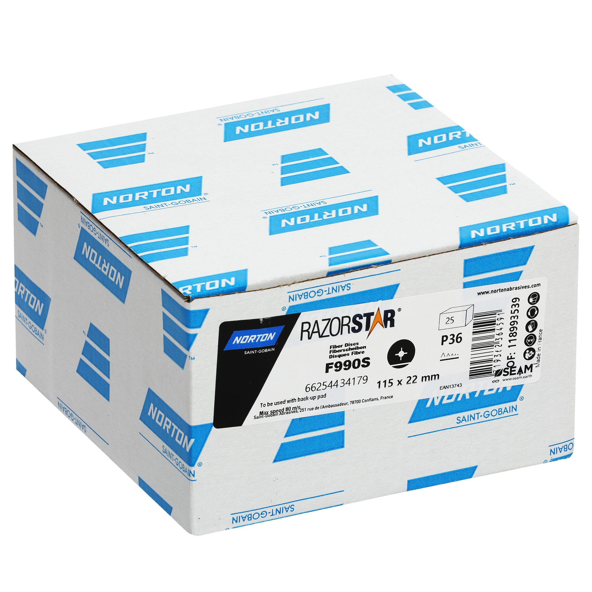 Produktbeschreibung: Norton RazorStar F990S Fiberscheibe | 115x22 mm | Korn 36 - Industriequalität