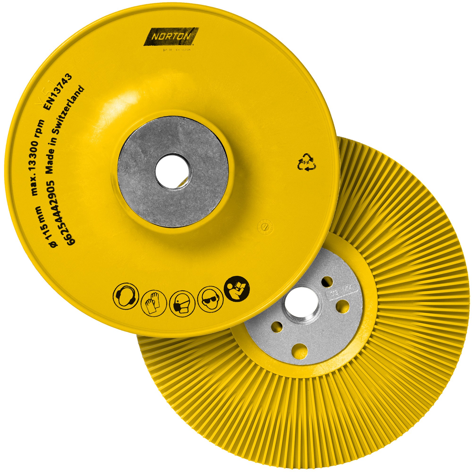 Zudem erfüllt dieser Stützteller die Anforderungen der ISO 15636, was seine Qualität und Leistungsfähigkeit unterstreicht. Setzen Sie auf den Norton RazorStar® Stützteller für maximale Leistung und Haltbarkeit bei allen Ihren Schleifprojekten.