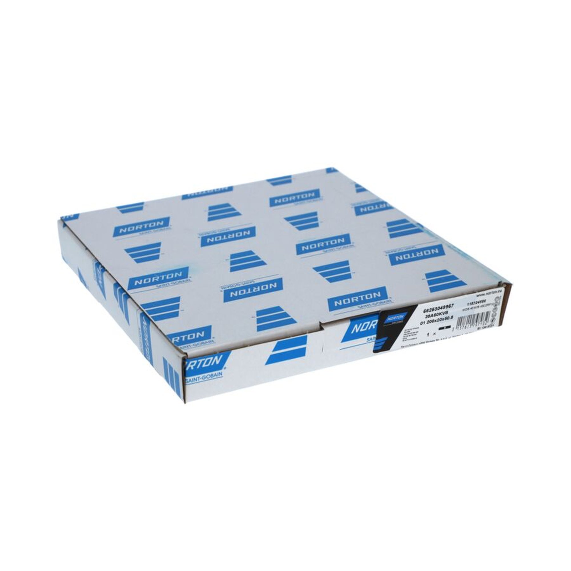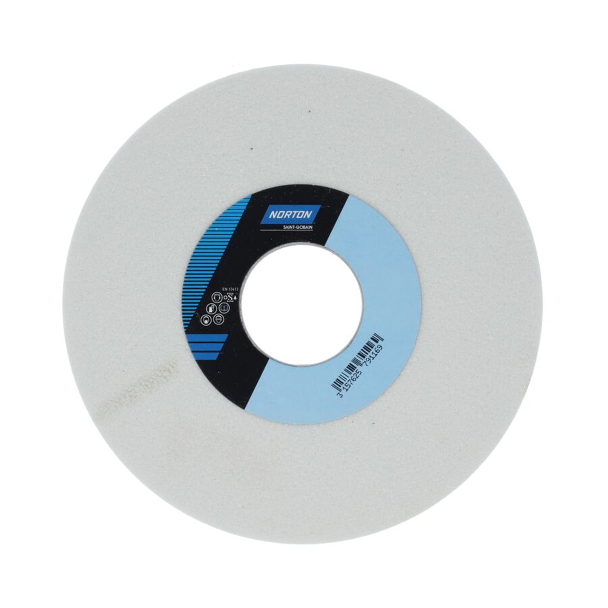 Keramisch gebundene Schleifscheibe (200x20x50.8mm, K60) von Norton für präzises Schleifen und Schärfen von Werkzeugen mit geringer Wärmeentwicklung und langer Standzeit. Ideal für gehärteten Stahl und Schnellarbeitsstähle.,