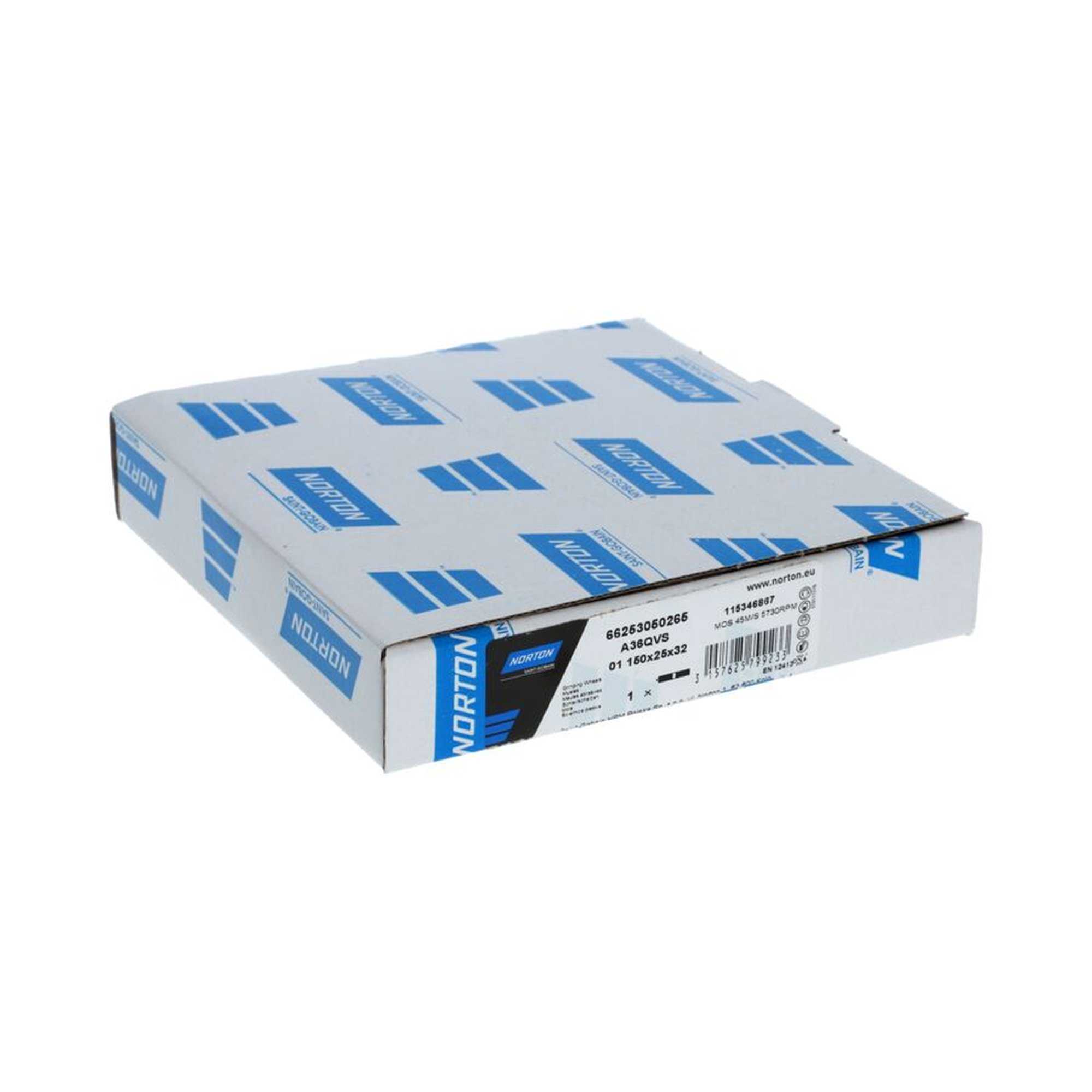 Die Scheibe ist vom Typ \Vitrified\ (keramikgebunden), was für eine ausgezeichnete Formstabilität und eine hohe Bruchfestigkeit sorgt. Mit einer maximalen Geschwindigkeit von 5730 U/min ermöglicht die Norton A36QVS effizientes Arbeiten ohne Qualitätsverlust.