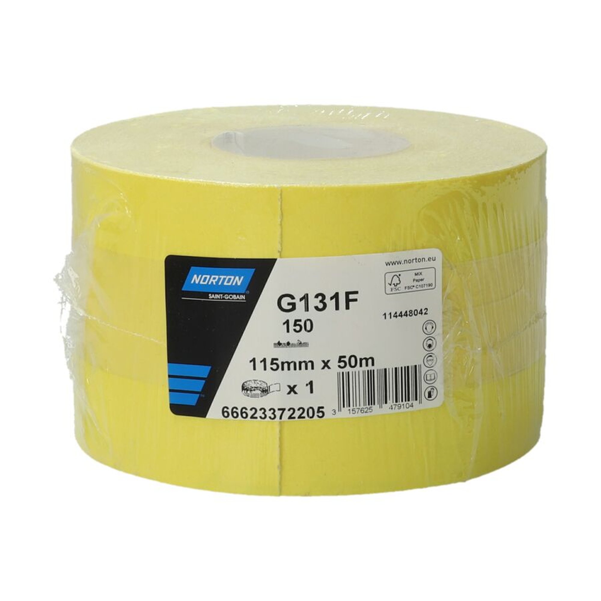 Norton Schleifrolle Schleifpapier 115 mm x 50 m G131F 150 für präzises Schleifen