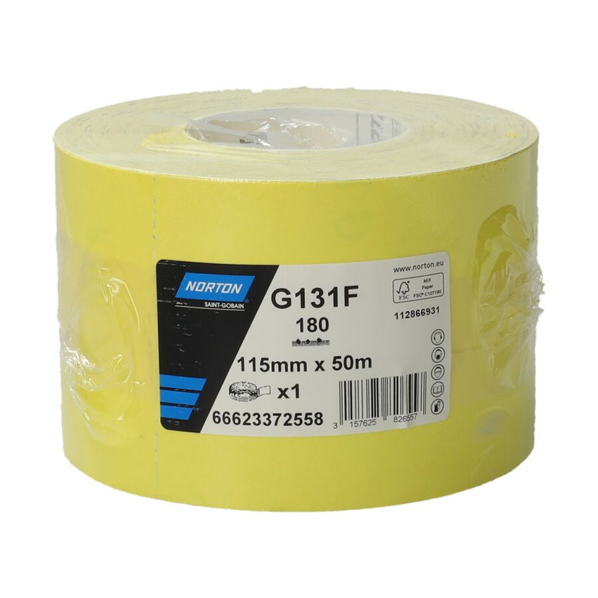 Norton Schleifrolle Schleifpapier 115 mm x 50 m G131F 180 - Hochwertiges Schleifpapier