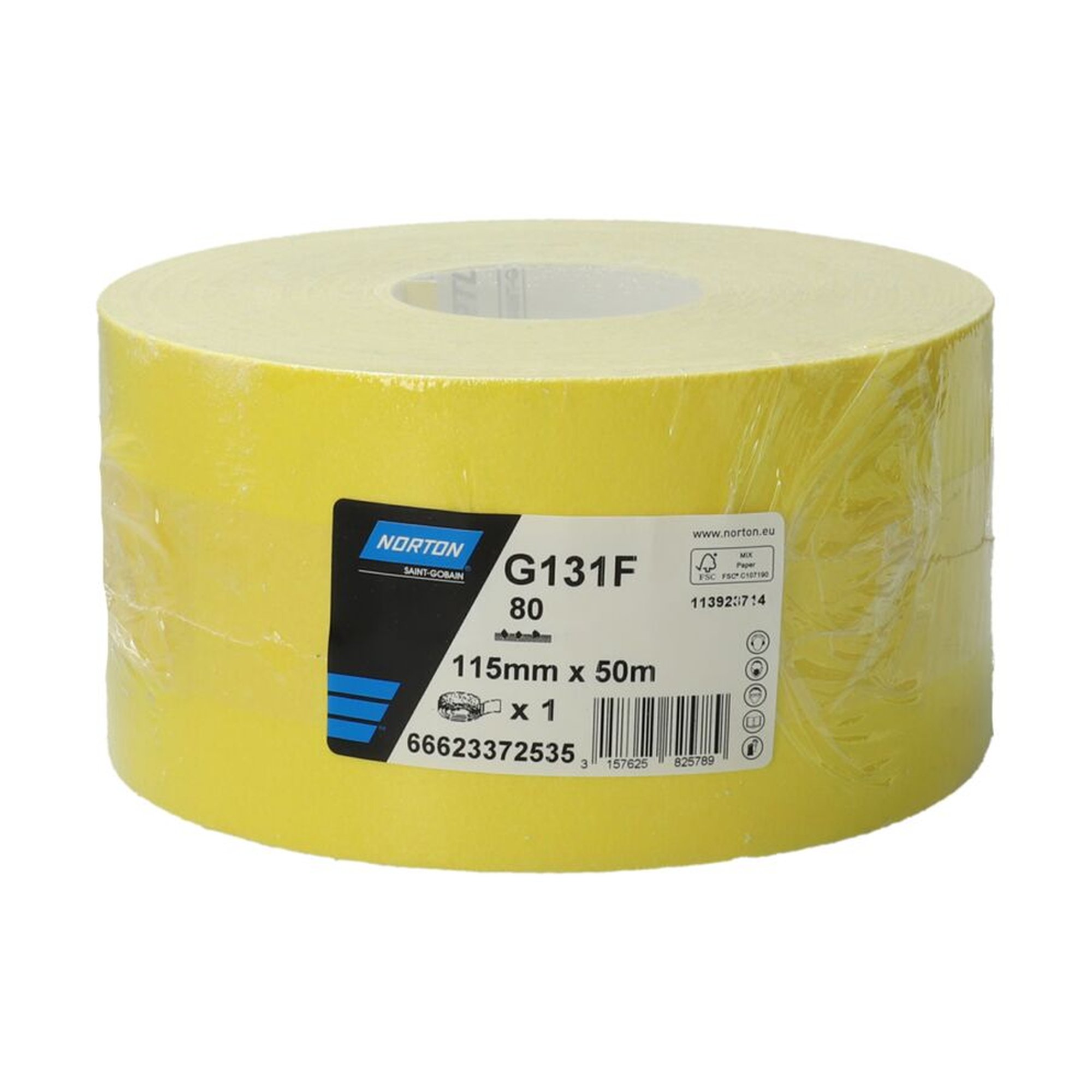 Norton Schleifrolle Schleifpapier 115 mm x 50 m G131F 80 - Hochwertiges Schleifpapier