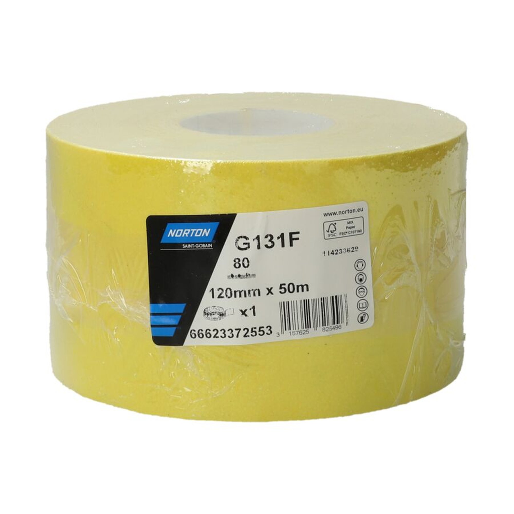 Norton Schleifrolle Schleifpapier 120 mm x 50 m G131F 80 - Hochwertiges Schleifpapier