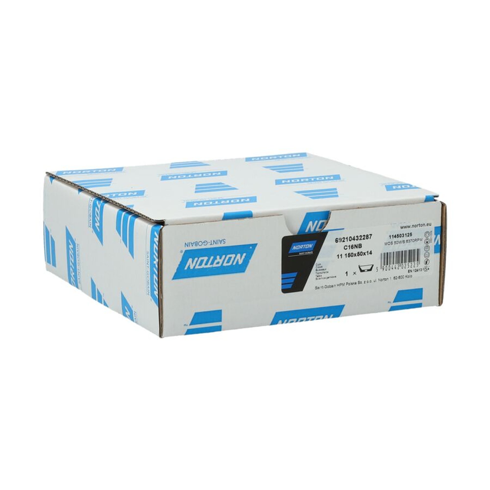 Der Norton 37C Schleiftopf ist speziell für den Einsatz in handgeführten Schruppanwendungen konzipiert. Mit den Maßen 150x50 mm und einer M14/40/54x20mm Aufnahme, ist dieser Schleiftopf ideal geeignet zum Entfernen und Glätten von Schweißnähten sowie zur Reinigung und Nivellierung von Metalloberflächen vor dem Schweißen.