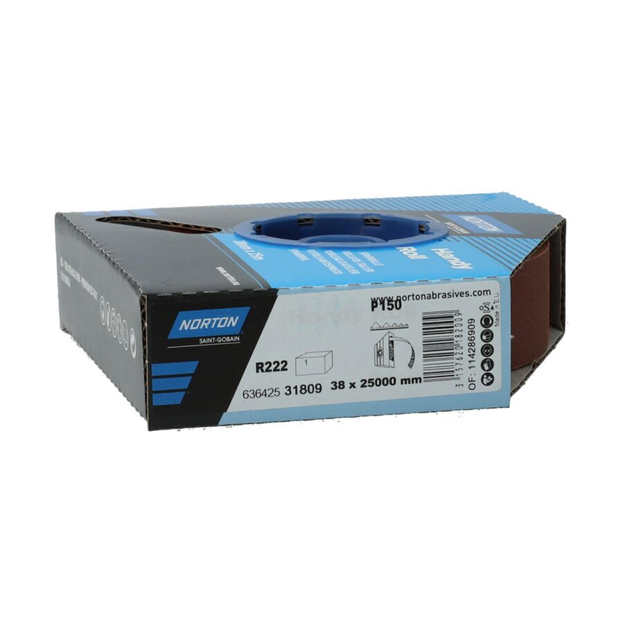 Die NORTON Gewebesparrollen R222 mit einer Abmessung von 38mm x 25000m und einer Körnung von K150 sind eine erstklassige Wahl für effizientes und flexibles Schleifen. Diese Rollen, hergestellt aus hochwertigem Aluminiumoxid, ermöglichen einen effektiven Handschliff von verschiedenen Materialien wie Holz, Metall sowie nicht-eisenhaltigen Metallen und sind besonders geeignet für den Einsatz in der Holzbearbeitung und allgemeinen Wartungsarbeiten.