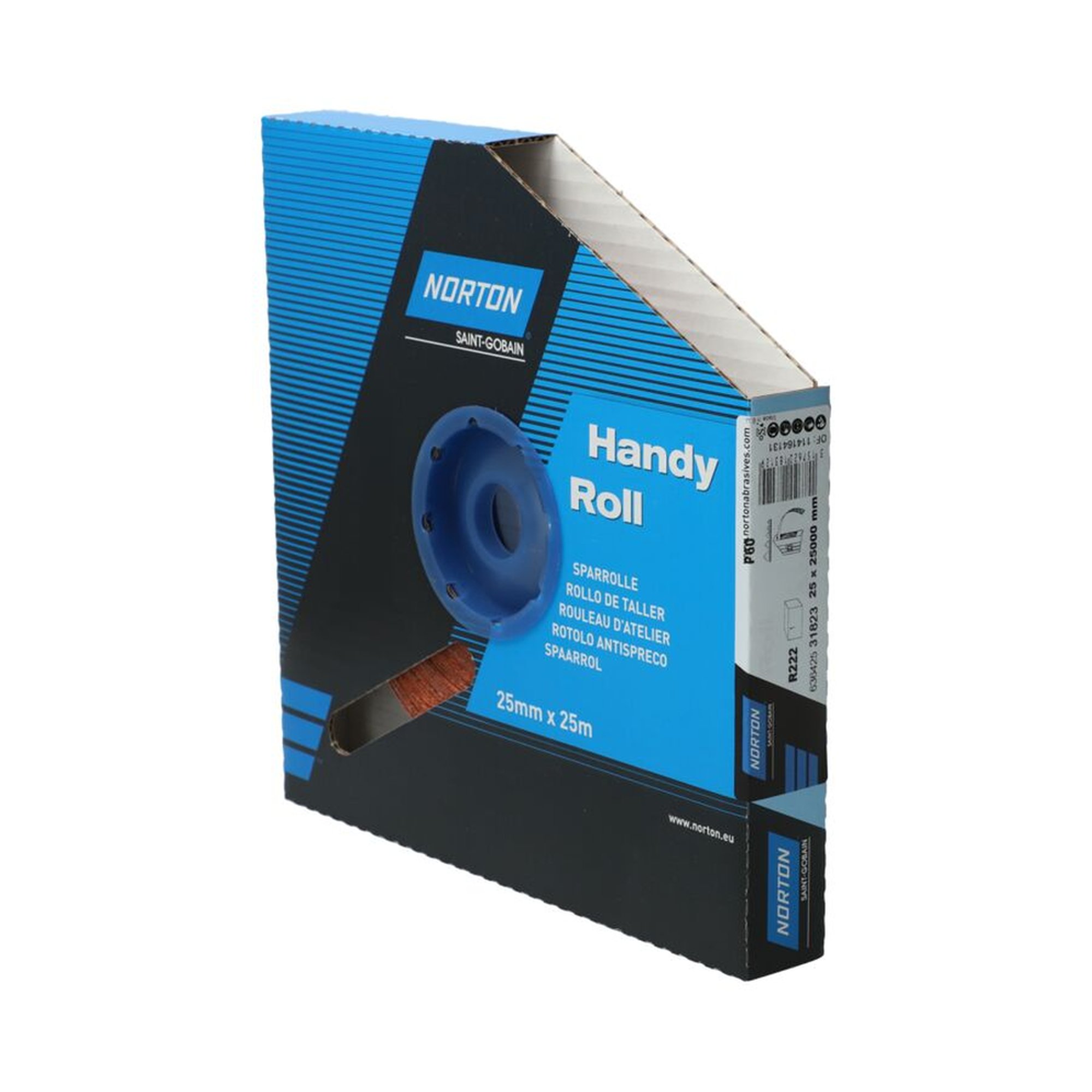 Die NORTON Gewebesparrollen R222 sind mit einer Länge von 25.000 Metern und einer Breite von 25 mm eine ausgezeichnete Wahl für professionelle Schleifarbeiten. Diese Rollen bestehen aus einem hochwertigen Aluminiumoxid-Schleifmittel, das besonders effektiv bei der Bearbeitung von Holz und Metall ist. Die Körnung K60 ermöglicht ein schnelles und effizientes Abschleifen mit sehr guten Ergebnissen bei verschiedenen Materialien.