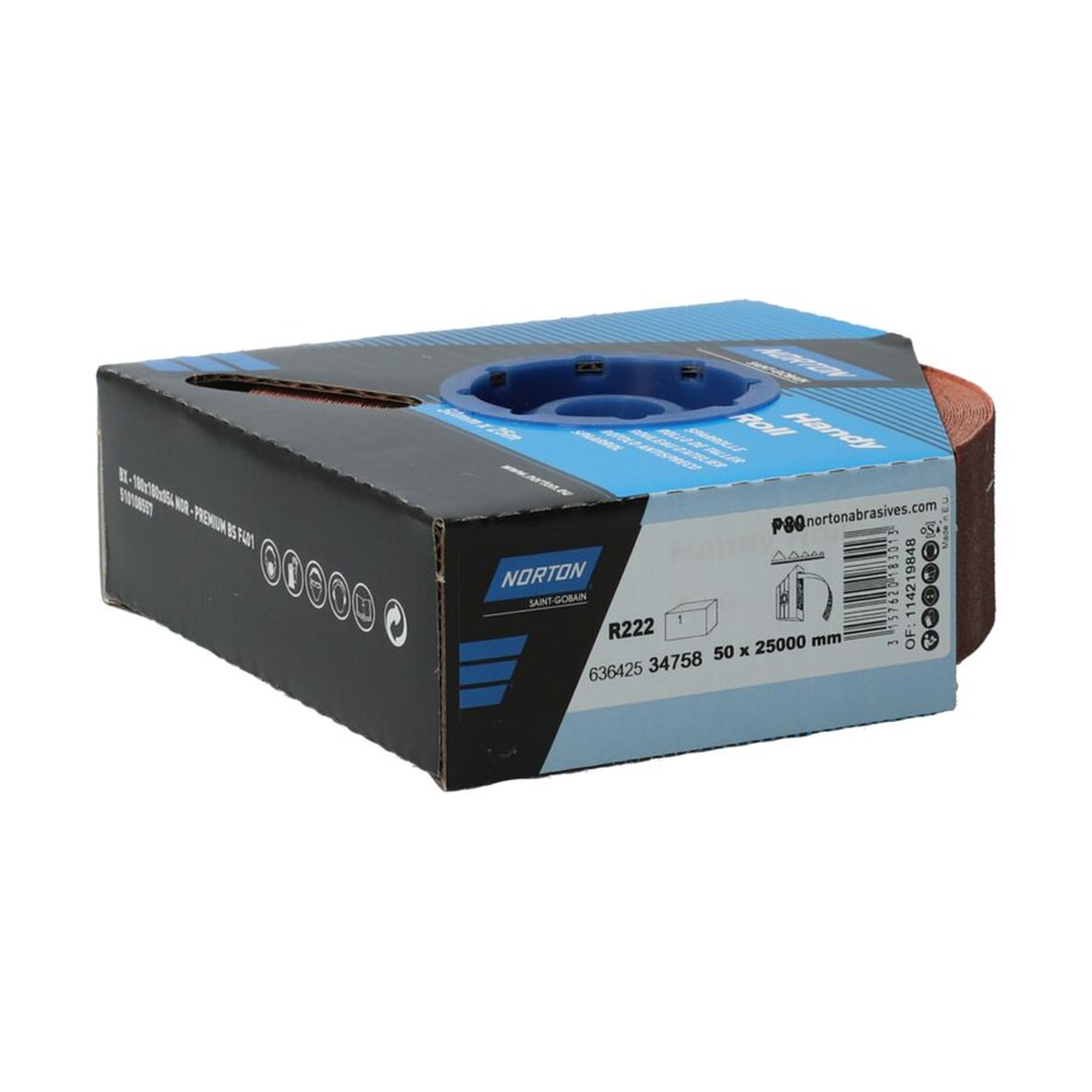 Norton SPARROLLEN - R222 Schleifrolle Schleifpapier | 50mm x 25000mm | Korn 80