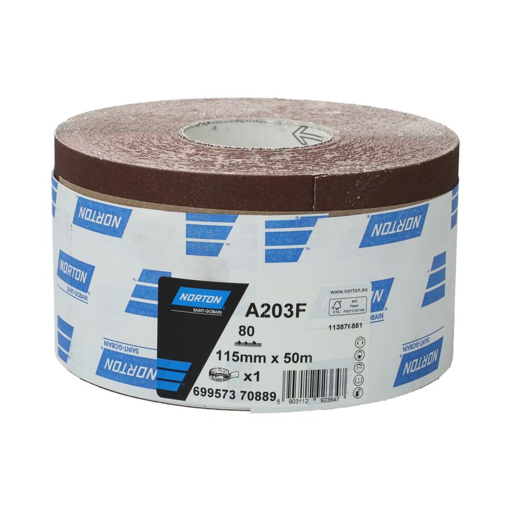 Norton Standardrollen A203F 115mm x 50000m K80 Schleifpapier für Profis