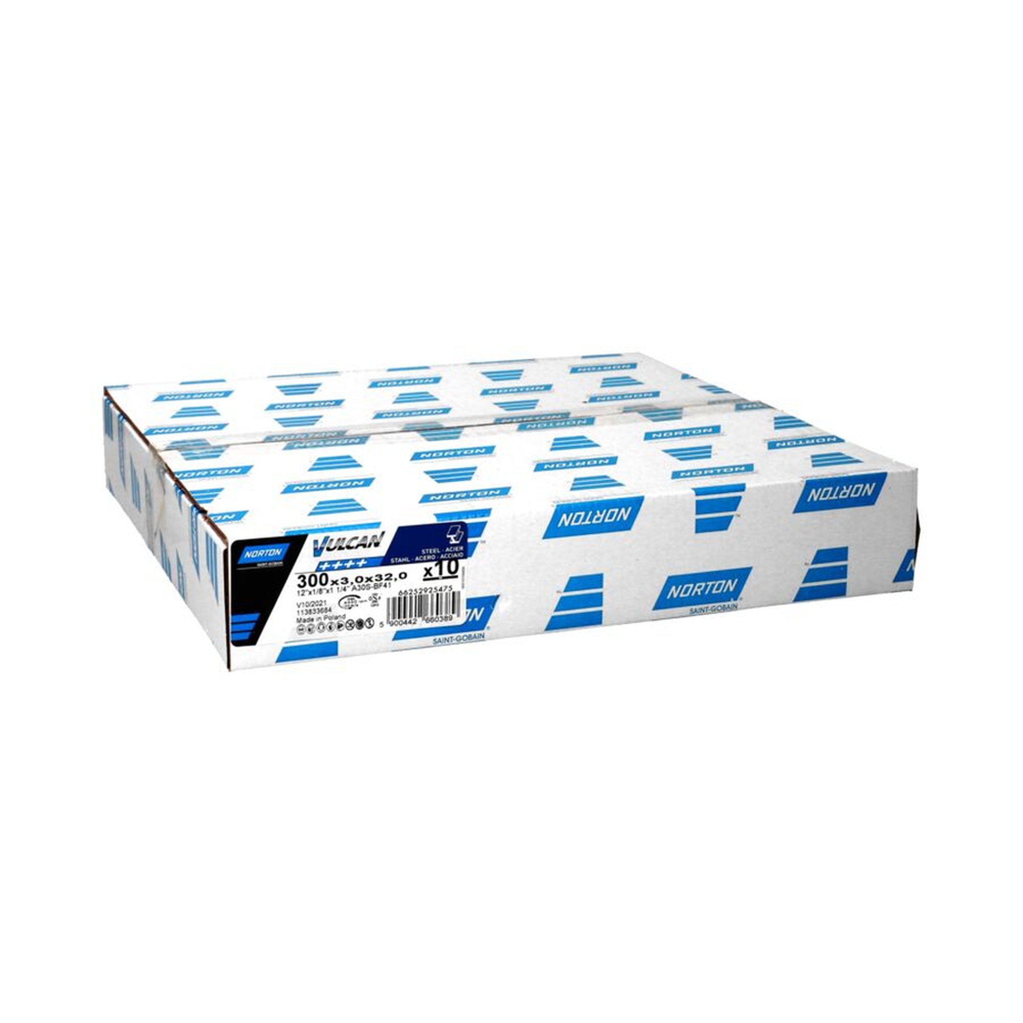 Die 10x NORTON Trennscheibe gerade 41 | 300x3,0x32,0 A 30 S - 100 m/s Vulcan sind Teil von Nortons breitem Sortiment an Trennscheiben für stationäre Maschinen. Diese hochwertigen und leistungsstarken Industrielösungen bieten eine zuverlässige und effiziente Möglichkeit, verschiedene Materialien zu trennen.