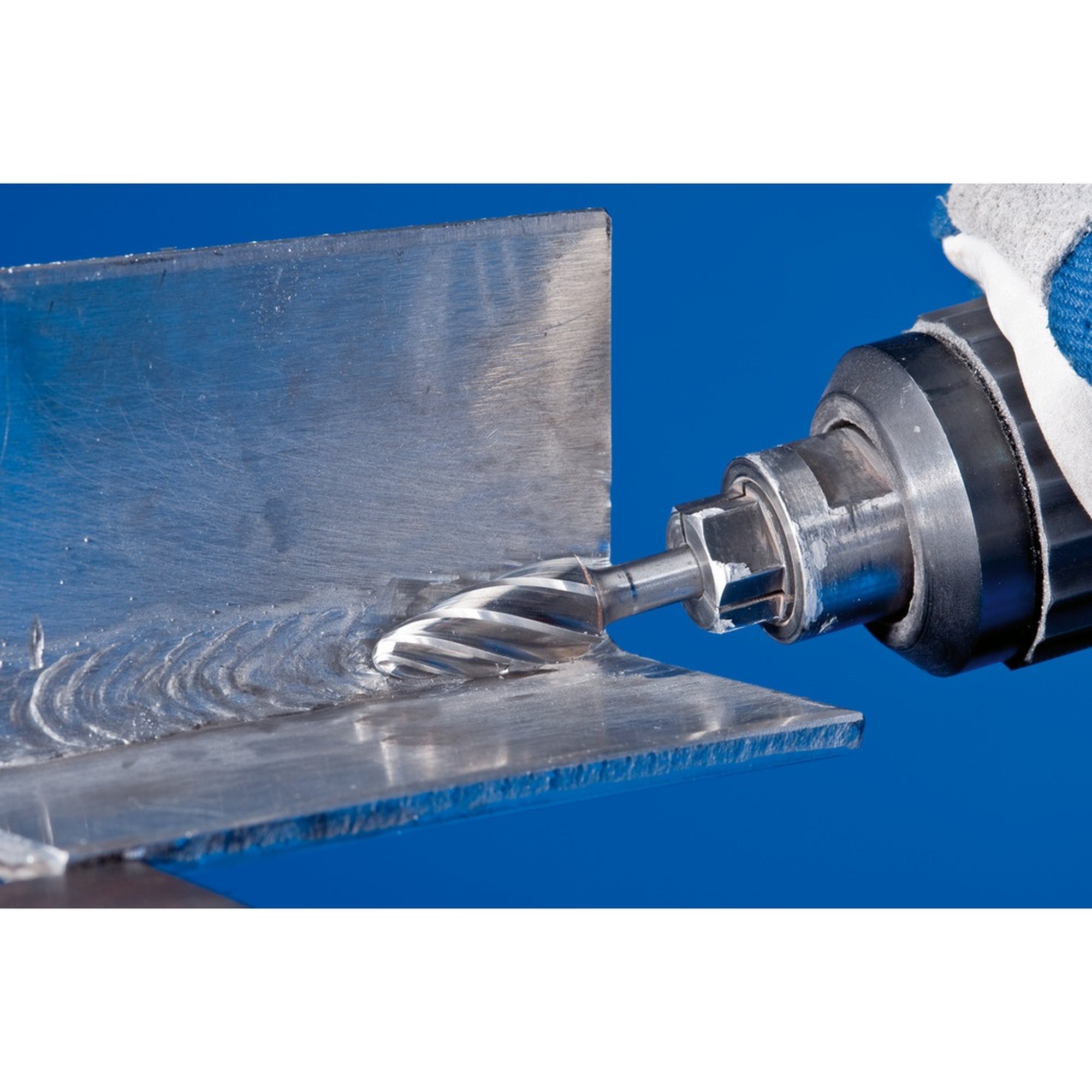Der HM-Frässtift besteht aus Hartmetall, einem besonders robusten und langlebigen Material. Dadurch ist er auch für den Einsatz in der Industrie geeignet und hält auch bei intensiver Nutzung lange.
