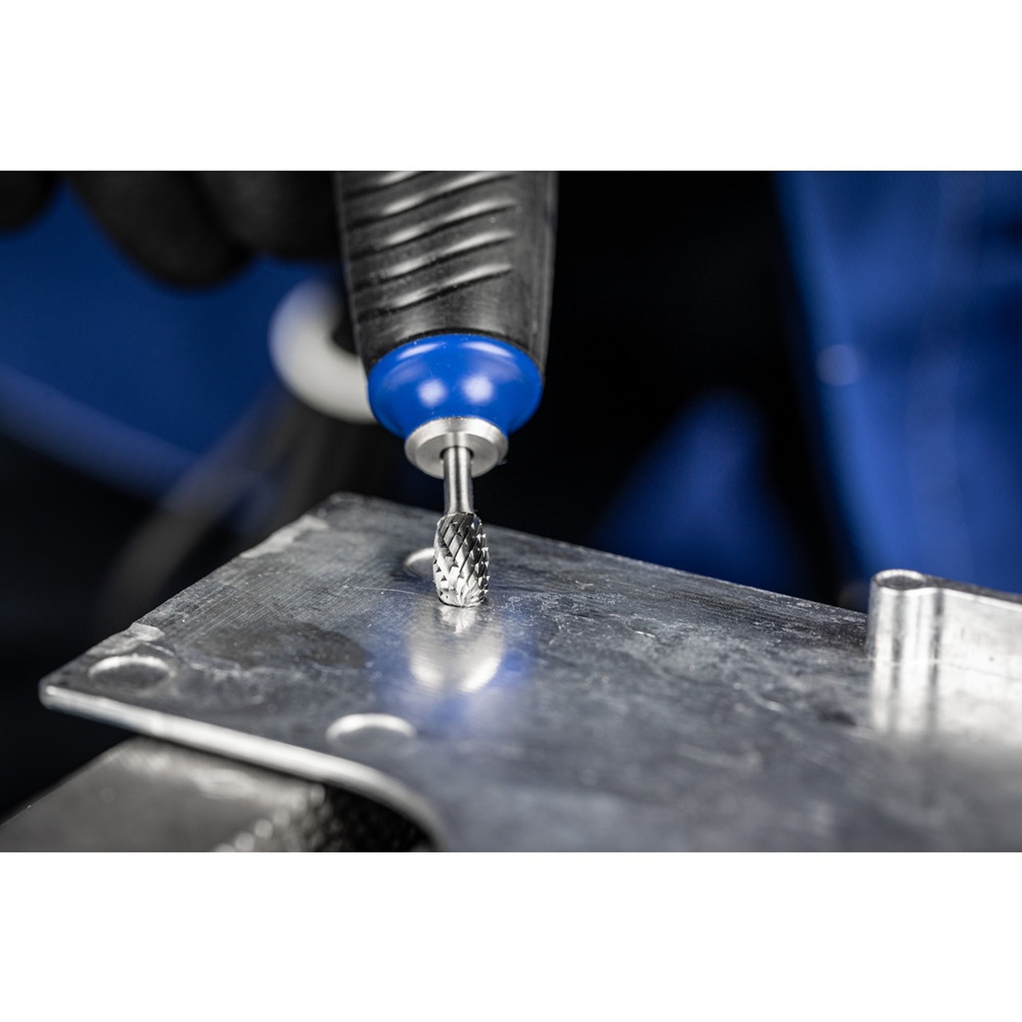 Der PFERD HM-Frässtift TRE 0610/3 Z3 PLUS ist ein hochwertiges Werkzeug für präzises Fräsen. Dieser Frässtift zeichnet sich durch seine tropfenförmige Form aus, die nach DIN 8032 standardisiert ist. Dadurch ist er besonders vielseitig einsetzbar und eignet sich für verschiedene Anwendungen. Die Verzahnung nach DIN 8033 sorgt für eine optimale Spanabfuhr und verhindert ein Verklemmen des Werkstücks.