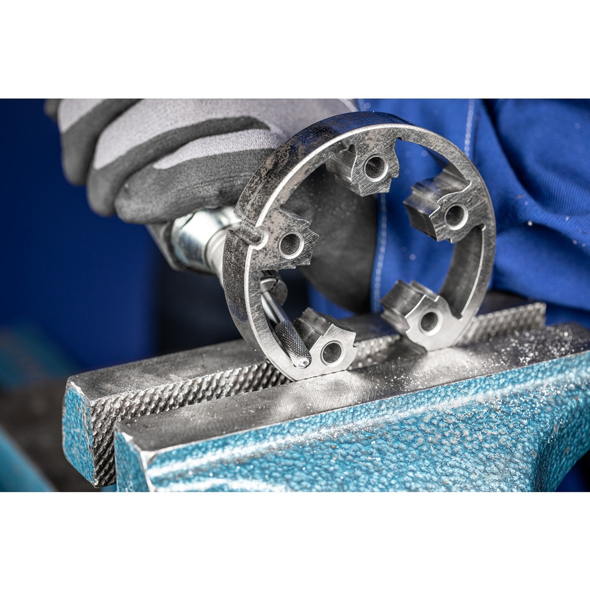 Der Frässtift besteht aus Hartmetall, einem besonders robusten Material, das eine lange Lebensdauer gewährleistet. Dadurch ist er ideal für den Einsatz in der Metallbearbeitung geeignet. Egal ob beim Entgraten, Schlichten oder Formen, der PFERD HM-Frässtift liefert stets präzise Ergebnisse.