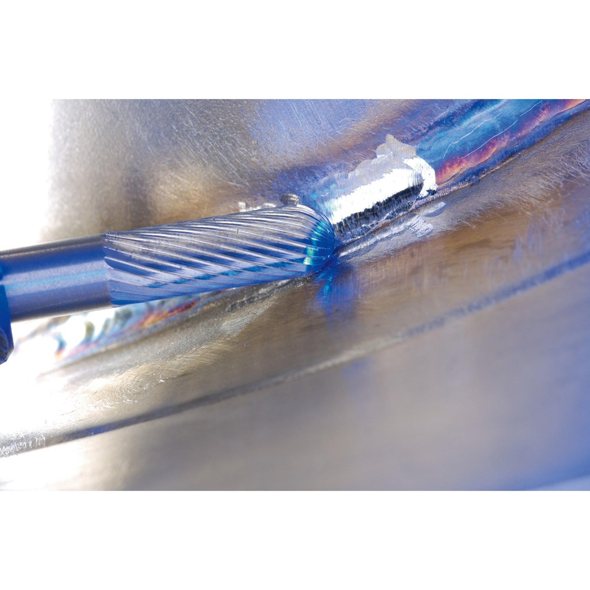 Die Kombination aus zylindrischen und kugelförmigen Geometrien ermöglicht eine vielseitige Anwendung des Frässtifts. Er kann sowohl zum Fräsen von Konturen und Nuten als auch zum Schleifen von Oberflächen verwendet werden. Dadurch ist er ein universelles Werkzeug für verschiedene Bearbeitungsaufgaben.