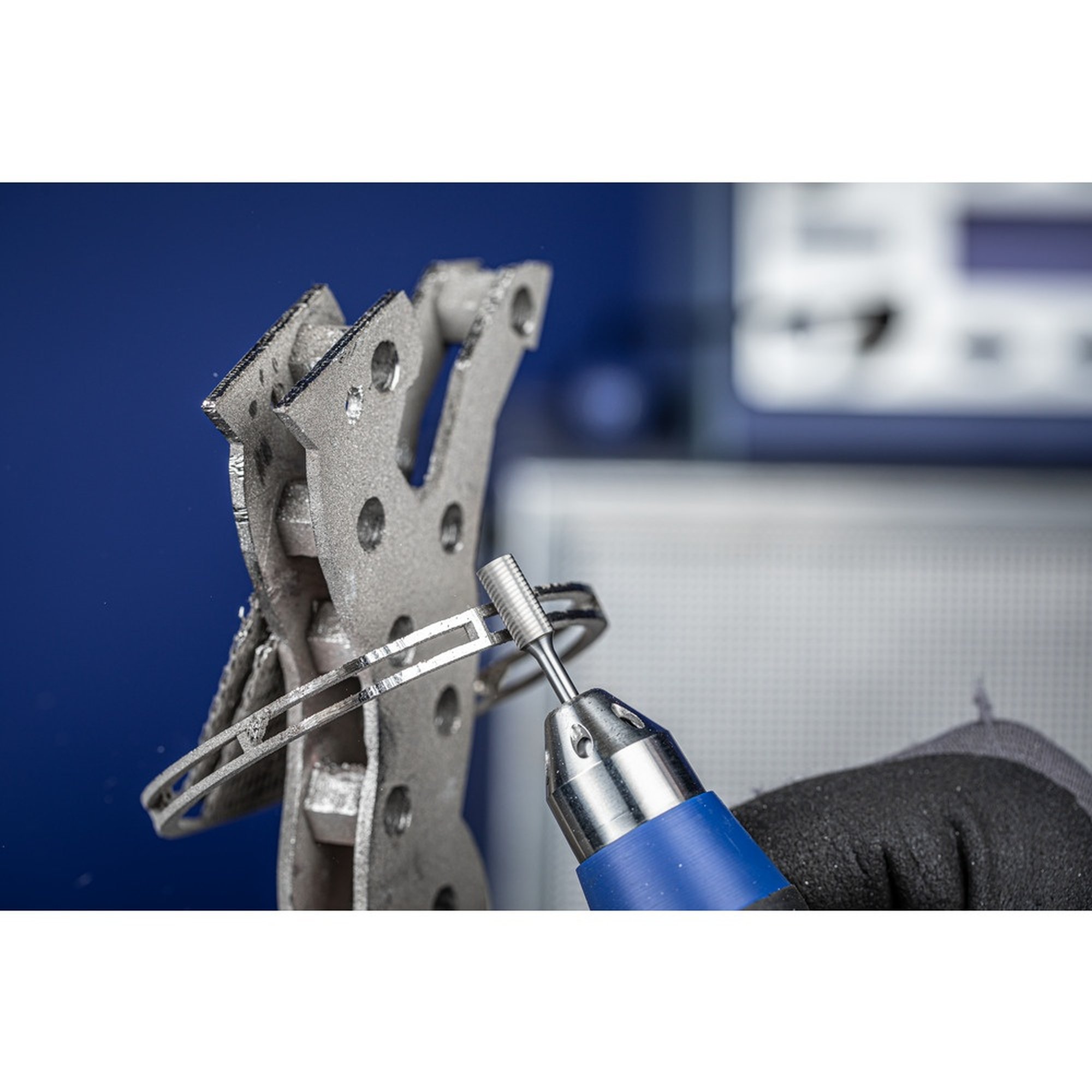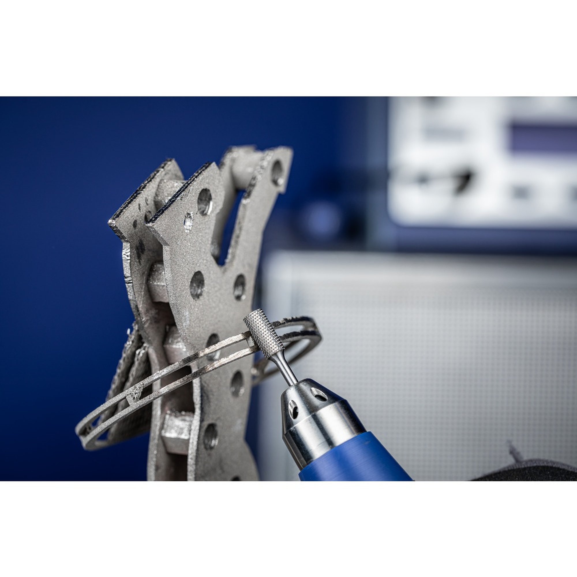 Dank seiner zylindrischen Form und der Verzahnung auf Umfang und Stirn ermöglicht der Frässtift präzise Konturen und feine Oberflächen. Er ist vielseitig einsetzbar und eignet sich sowohl für das Entgraten von Kanten als auch für das Fräsen von Nuten und Profilen.