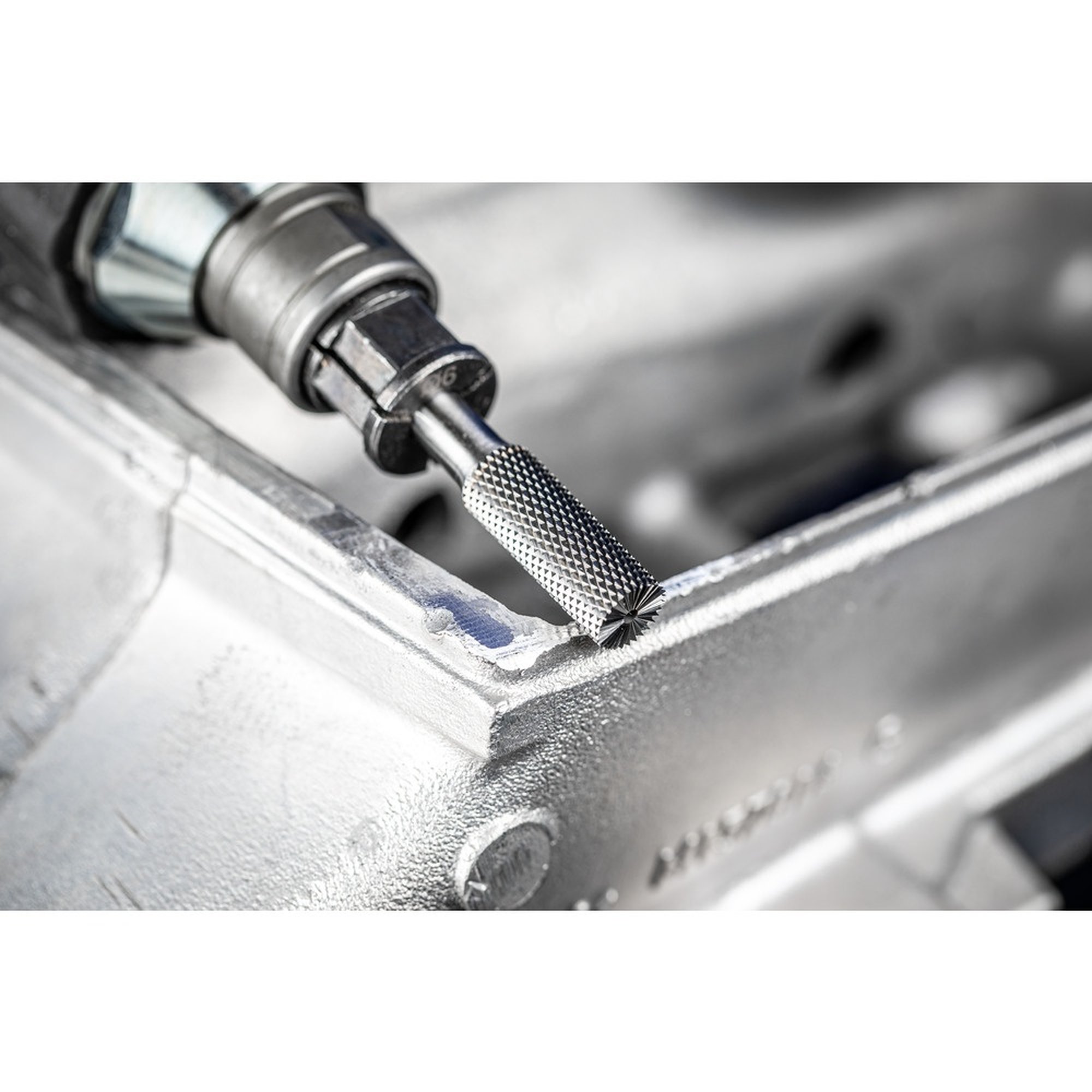 Dank der hochwertigen HM-Beschichtung ist der Frässtift besonders langlebig und widerstandsfähig. Er eignet sich daher ideal für den Einsatz in der Metallbearbeitung, aber auch in anderen Bereichen wie der Holzbearbeitung oder der Kunststoffverarbeitung. Die Verzahnung auf Umfang und Stirn sorgt für eine optimale Spanabfuhr und verhindert ein Verklemmen des Werkstücks. Dadurch wird ein gleichmäßiges und präzises Fräsen ermöglicht.