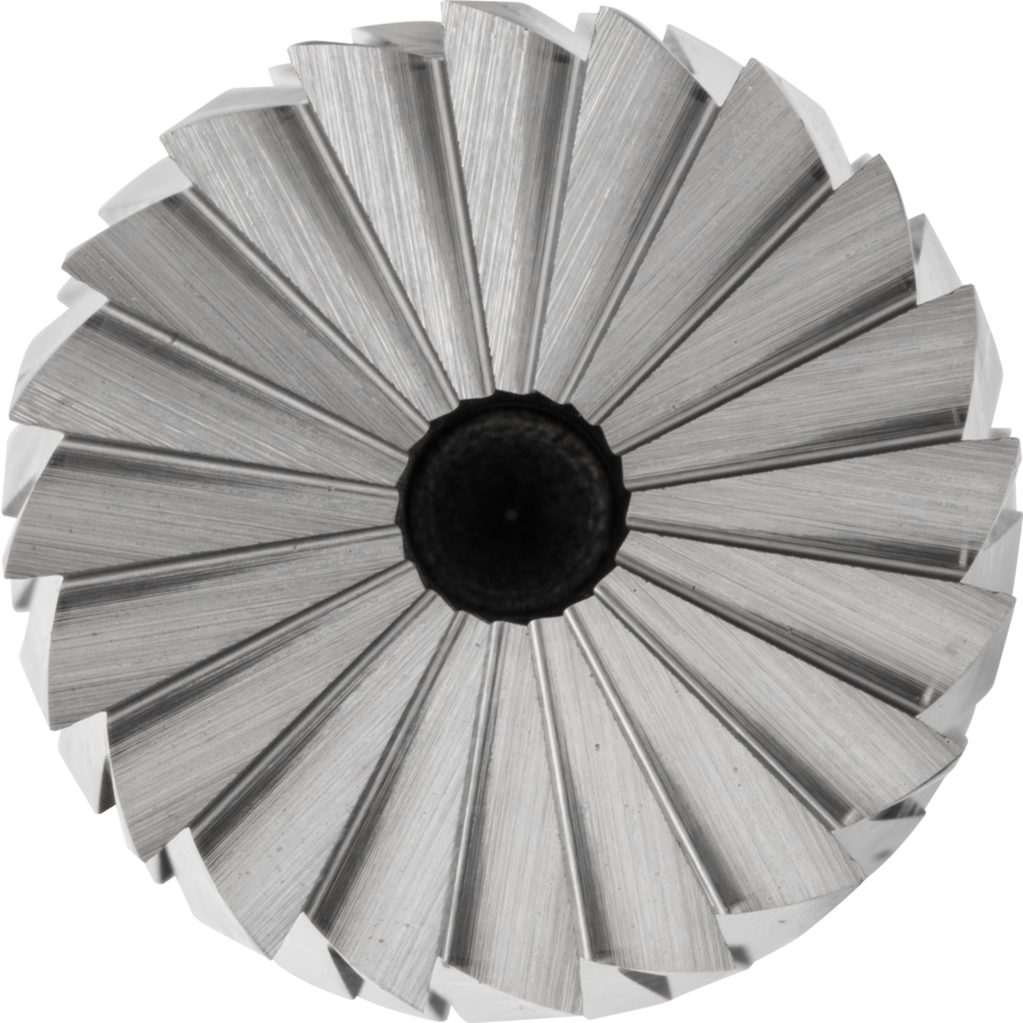 Merkmale: Zylindrischer Frässtift nach DIN 8032 mit Verzahnung nach DIN 8033 auf Umfang und Stirn. Langlebig und robust dank Gesamtlänge (GL)