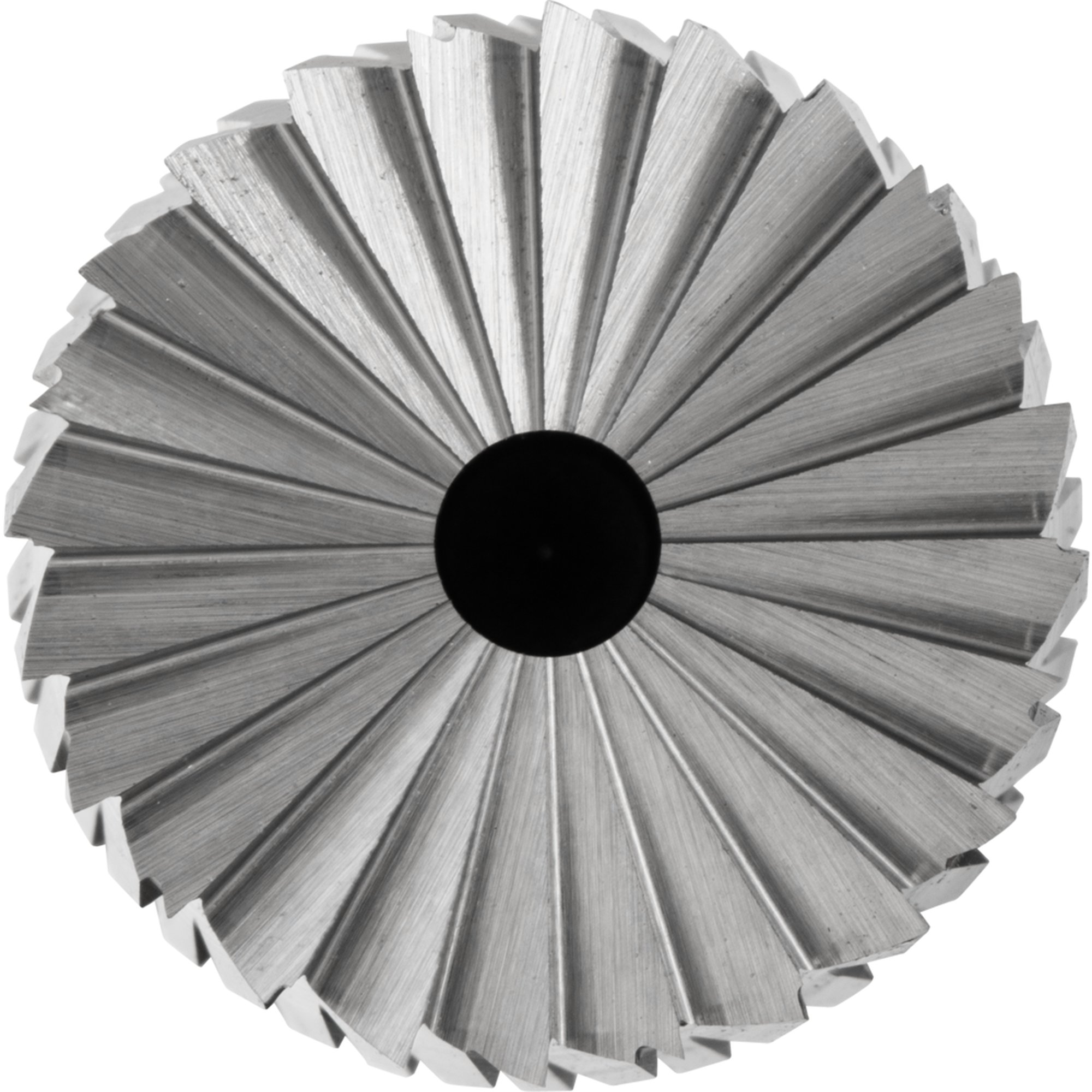 Die Verzahnung nach DIN 8033 sorgt für eine optimale Spanabfuhr und verhindert ein Verklemmen des Frässtifts. Dadurch wird eine hohe Standzeit gewährleistet und ein effizientes Arbeiten ermöglicht. Die Zahnung auf Umfang und Stirn ermöglicht zudem ein schnelles und gleichmäßiges Abtragen des Materials.