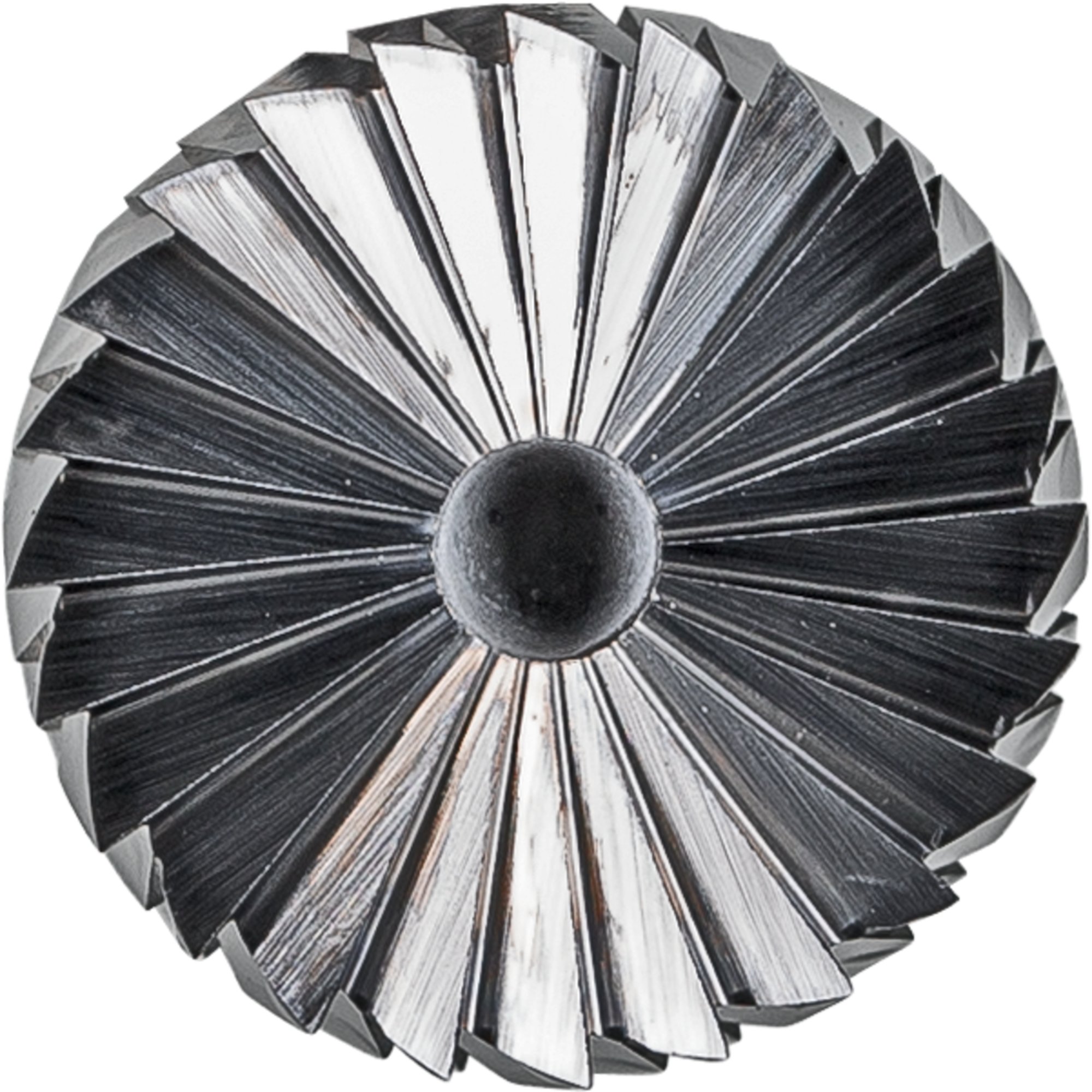 Dank seiner speziellen Verzahnung bietet der Frässtift eine optimale Spanabfuhr. Dies verhindert ein Verstopfen des Werkzeugs und ermöglicht ein gleichmäßiges und sauberes Fräsen. Die Verzahnung auf Umfang und Stirn sorgt zudem für eine hohe Schneidleistung und eine effiziente Materialabtragung.