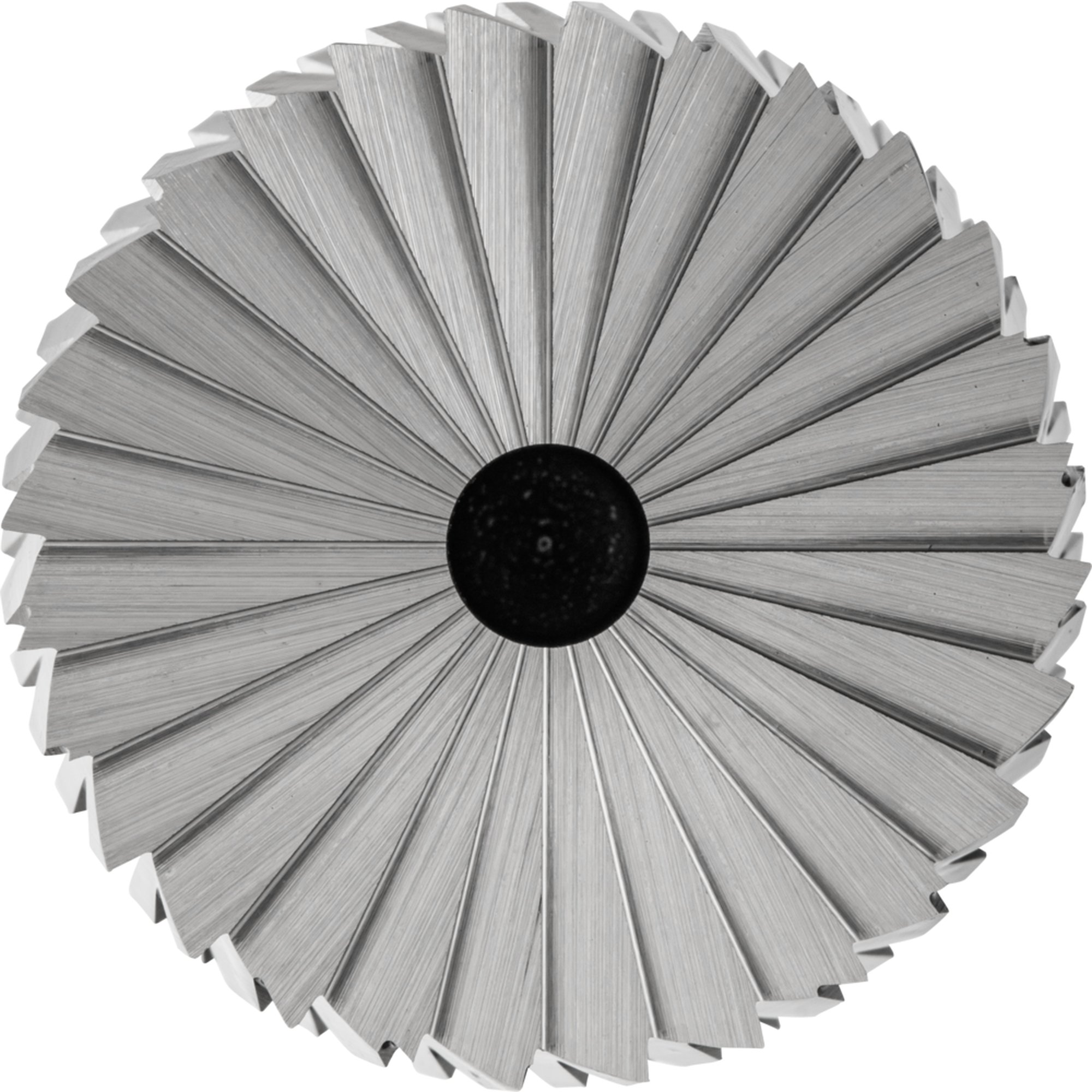 Dank seiner zylindrischen Form ist der Frässtift vielseitig einsetzbar. Er eignet sich sowohl für das Fräsen von Konturen als auch für das Entgraten von Kanten. Durch die Verzahnung auf Umfang und Stirn kann er sowohl in Vorwärts- als auch in Rückwärtsrichtung verwendet werden.