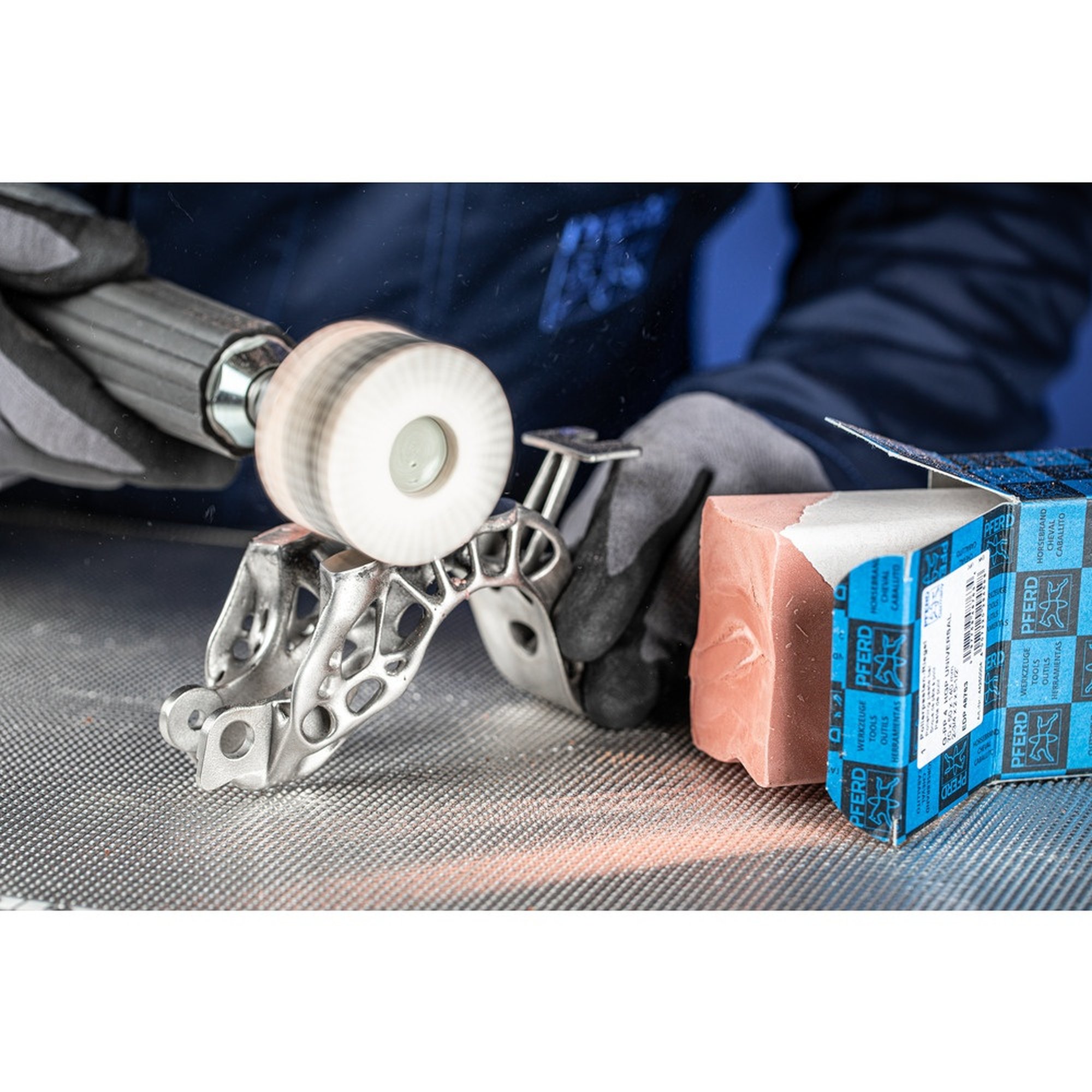 Vorteile: Durch die Verwendung des PFERD Polierpasten-Riegels G-PP 4 HGP UNIVERSAL in Kombination mit Filzwerkzeugen und Tuchringen können Sie vielseitige Vor- und Hochglanzpolituren durchführen