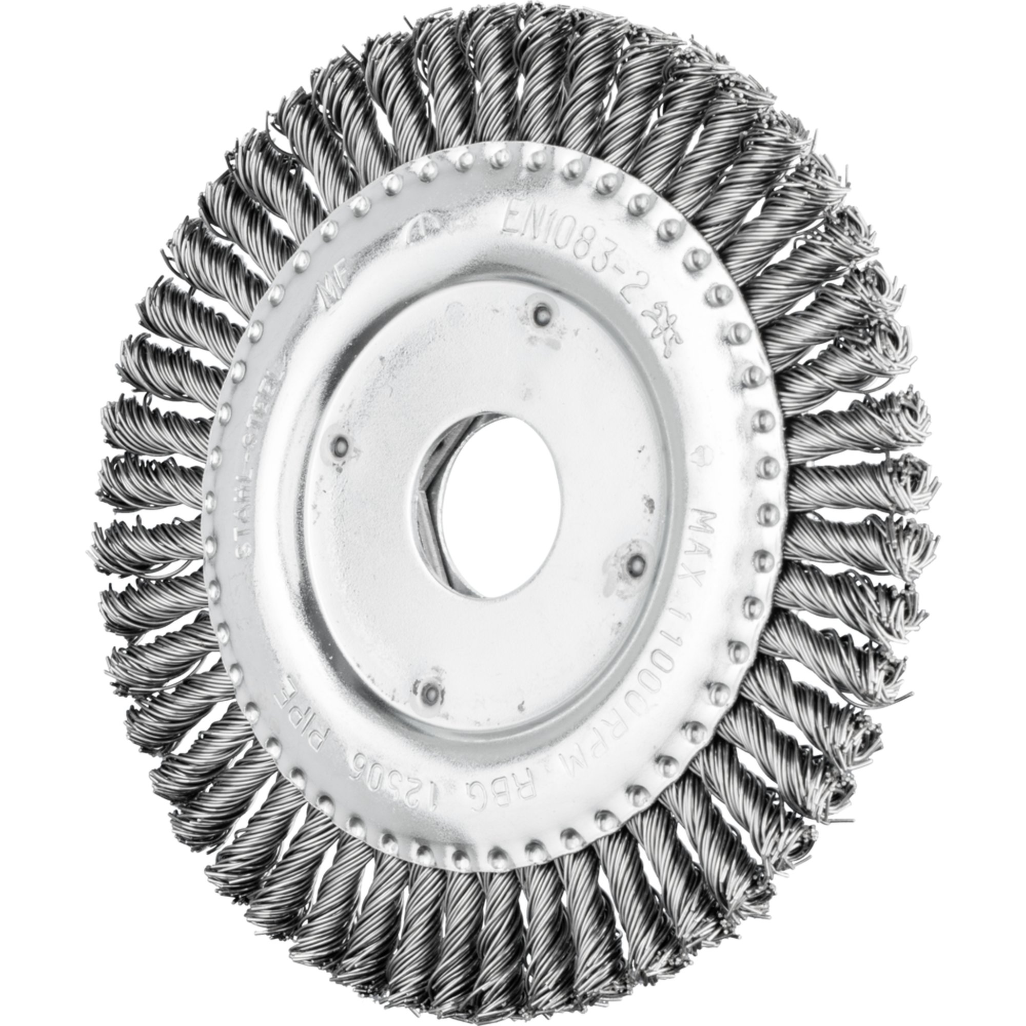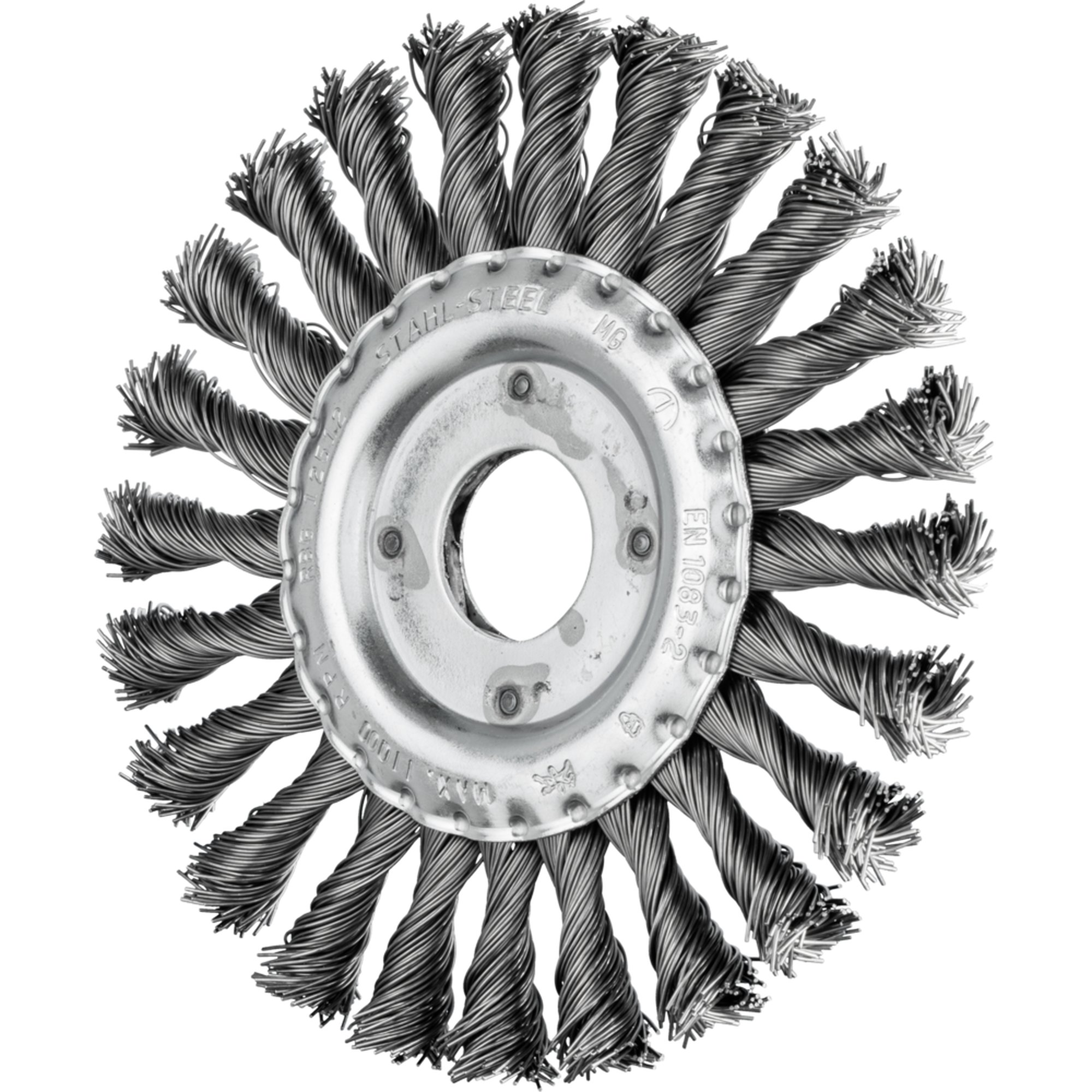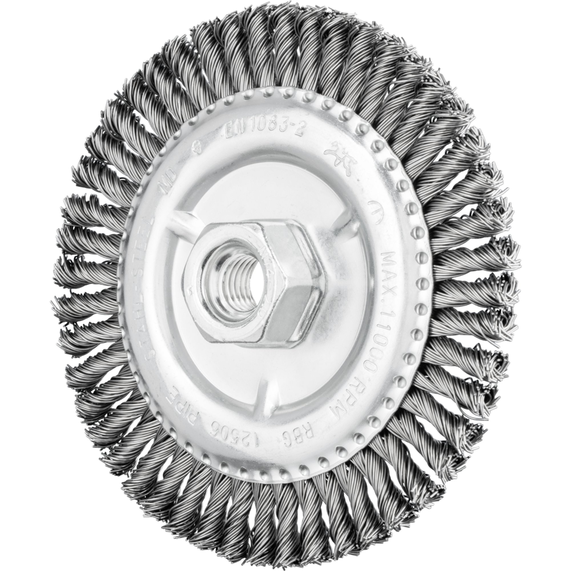 Die Bürste ist aus hochwertigem INOX-Material gefertigt und verfügt über eine M14-Gewindeaufnahme, die eine einfache Montage auf einer Vielzahl von Werkzeugen ermöglicht. Die gezopfte Struktur der Bürste sorgt für eine besonders aggressive Arbeitsweise, die selbst hartnäckige Verschmutzungen und Verunreinigungen mühelos entfernt.