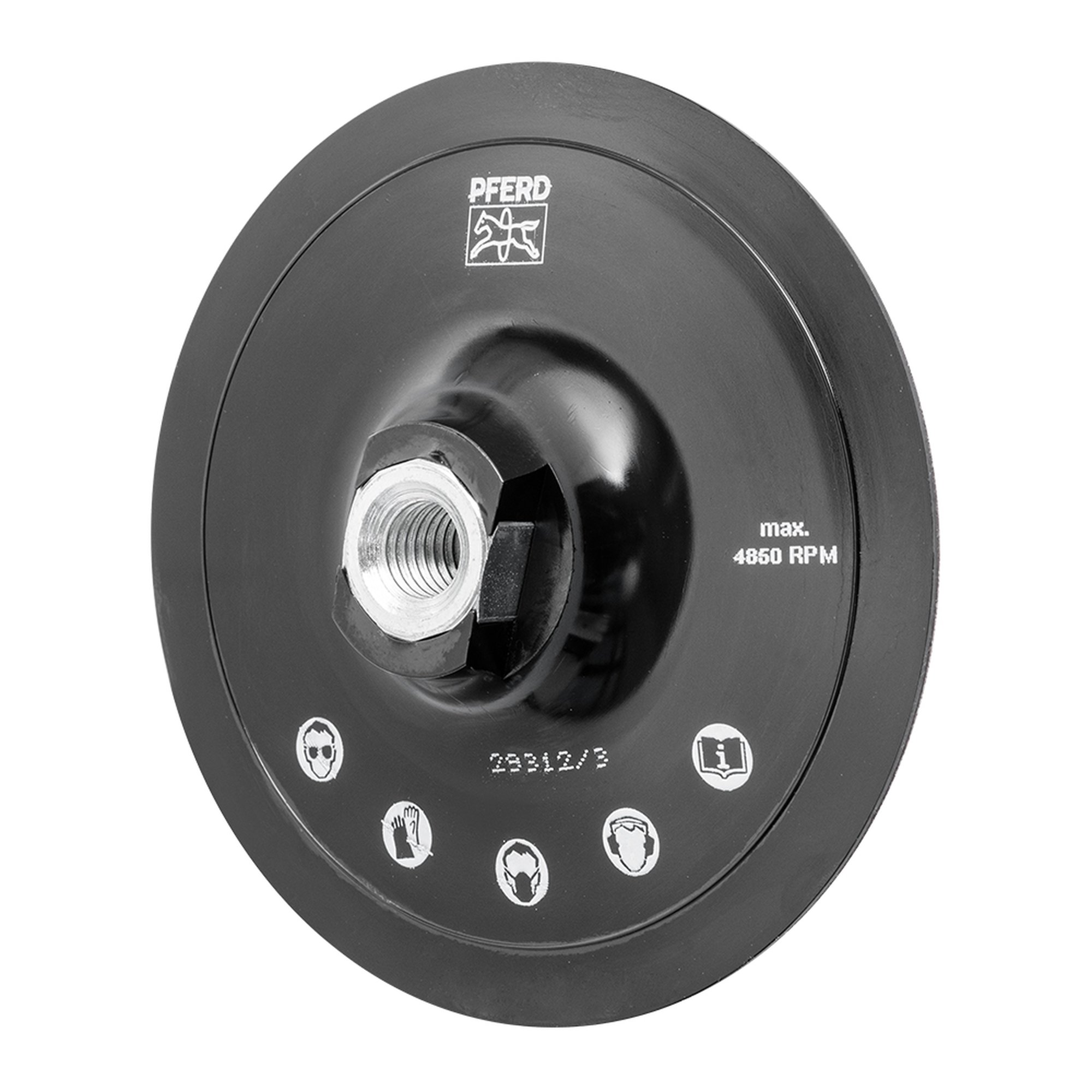 Besonderheiten: Der Pferd Schleifscheibe Klettrondenhalter KRH 125 M14 ist ein flexibler Halter, der speziell für den Einsatz von Klettronden auf handelsüblichen Winkelschleifern entwickelt wurde.