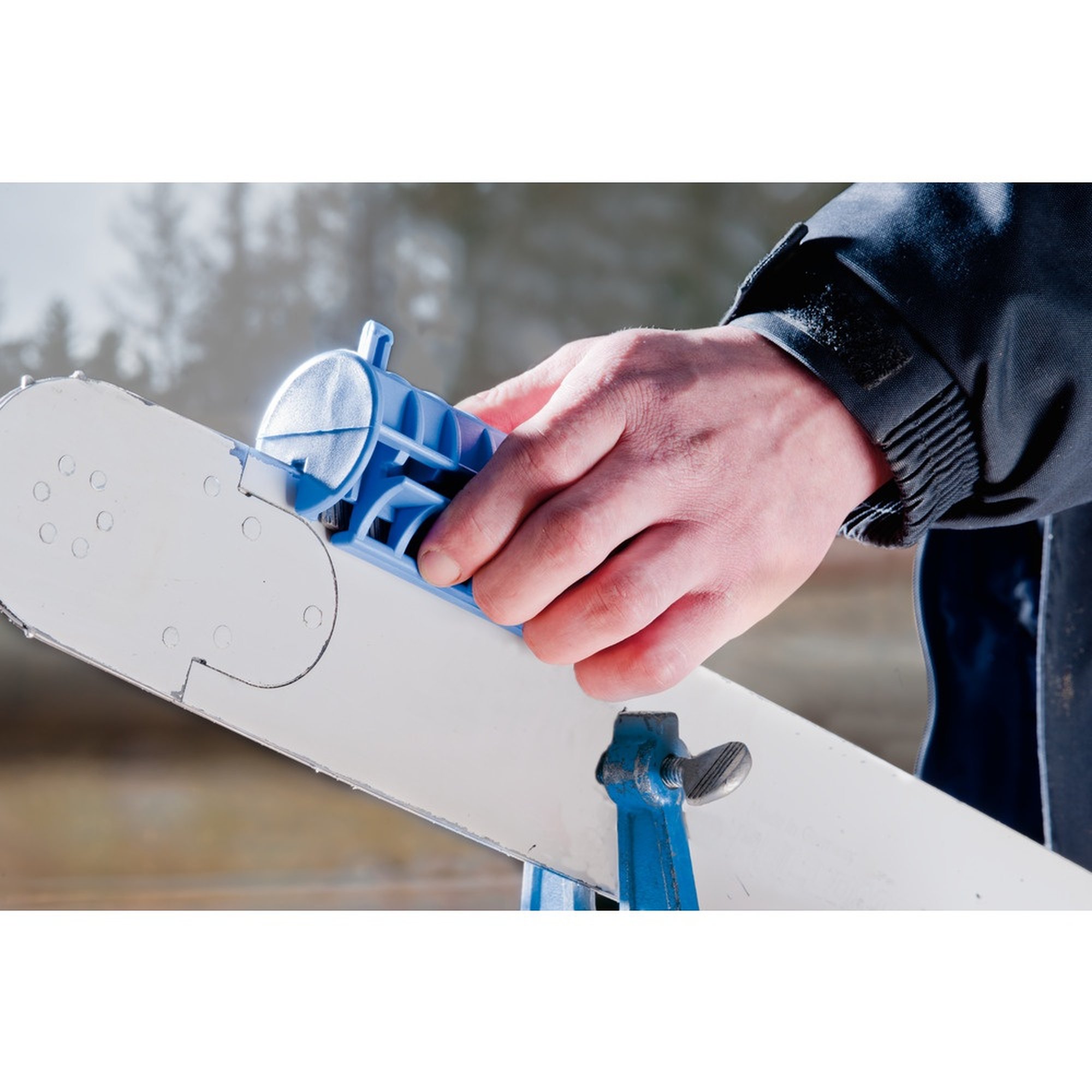 Eine regelmäßige Wartung der Führungsschiene und Sägekette ist unerlässlich, um deren Lebensdauer zu verlängern. Mit der PFERD Universal-Kantenfeile UKF Z2 können Sie dies einfach und schnell erledigen. Durch das Entfernen von Graten und Unebenheiten wird die Schnittpräzision erhöht und die Sicherheit beim Arbeiten mit der Motorsäge verbessert.