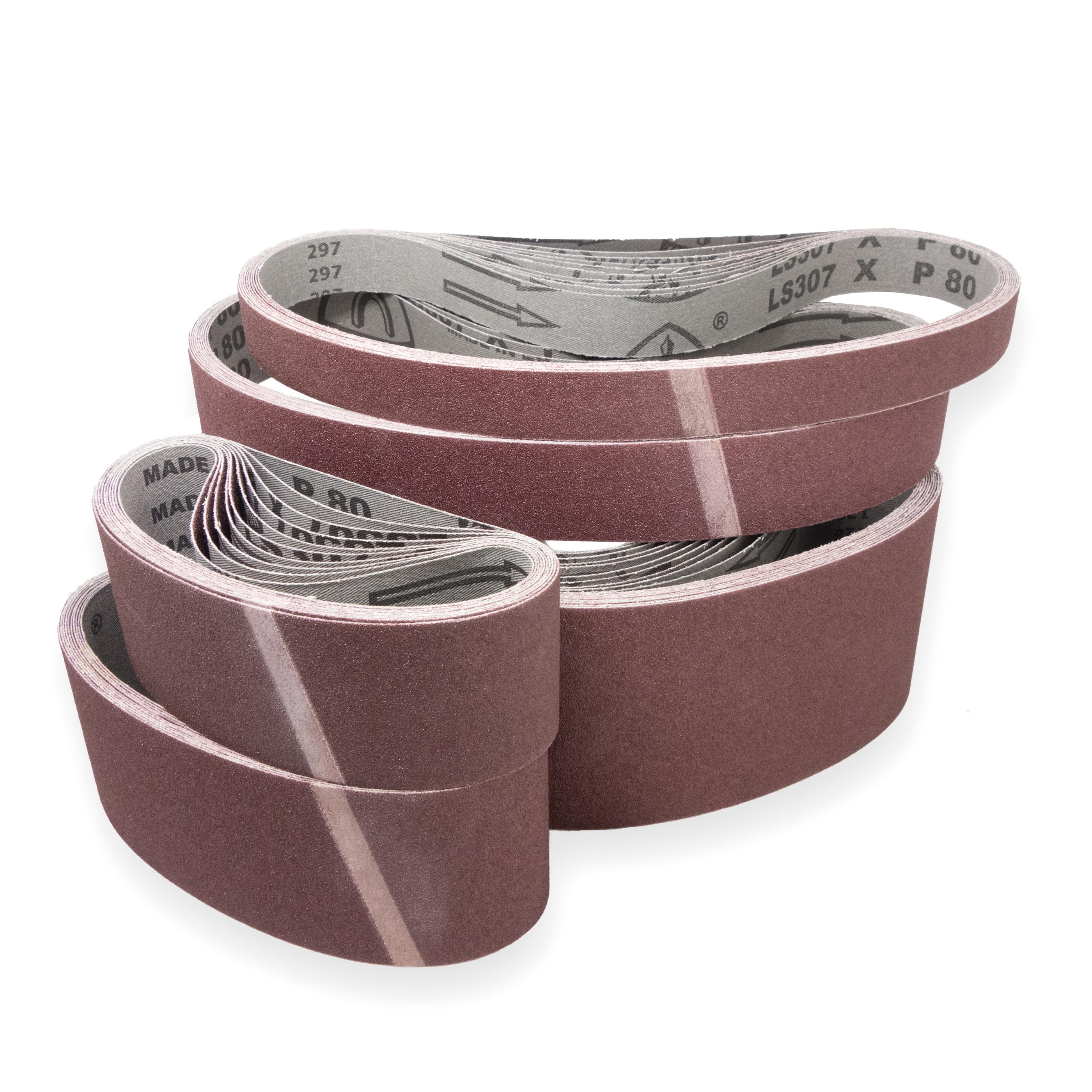 - Schleifbänder aus Aluminiumoxid: Diese Schleifbänder eignen sich gut zum Schleifen von Stahl und anderen Metallen. Sie sind robust und haben eine gute Abtragsleistung.