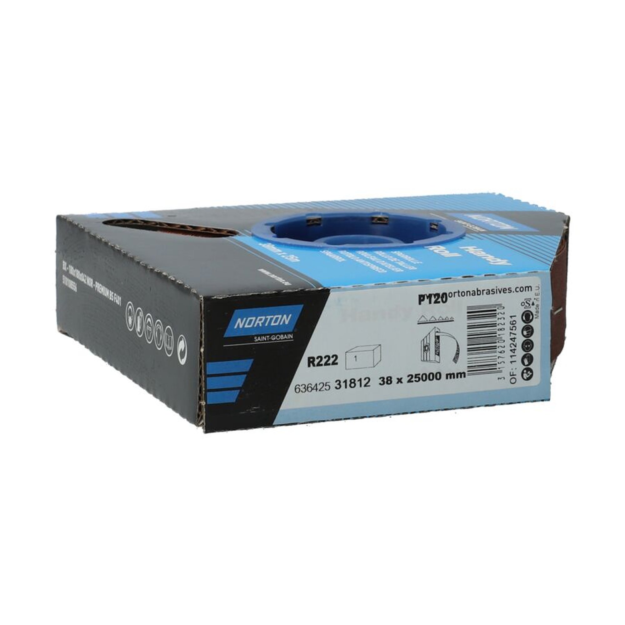Die NORTON Gewebesparrollen R222 mit den Maßen 38mm x 25000m und einer Körnung von K120 sind speziell für effizientes und flexibles Schleifen entwickelt worden. Diese hochwertigen Schleifrollen zeichnen sich durch ihre Fähigkeit aus, sauber und gerade ohne Ausfransen abgerissen zu werden. Verpackt in einer praktischen Spenderbox, bieten sie eine einfache Lagerung und sind weniger anfällig für Beschädigungen, was zu geringerem Materialabfall führt.