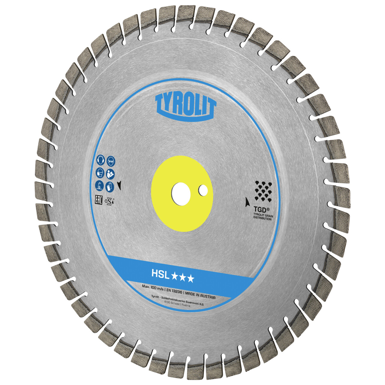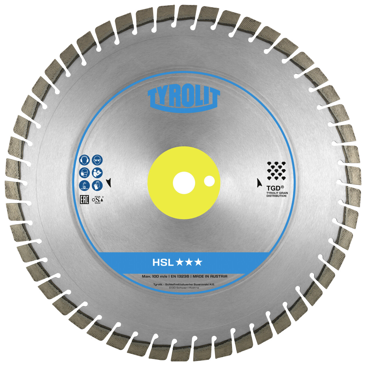 HSL Handsägeblatt in Industriequalität | für Beton | in TGD®-Technologie | Bearbeitbare Materialien: Einsatz auf armiertem oder unarmiertem Beton mit Wandstärken von bis zu 150 mm. Details: Verwendung im System mit kraftstoffgetriebenen, elektrischen oder hydraulischen Trennschleifmaschinen.
