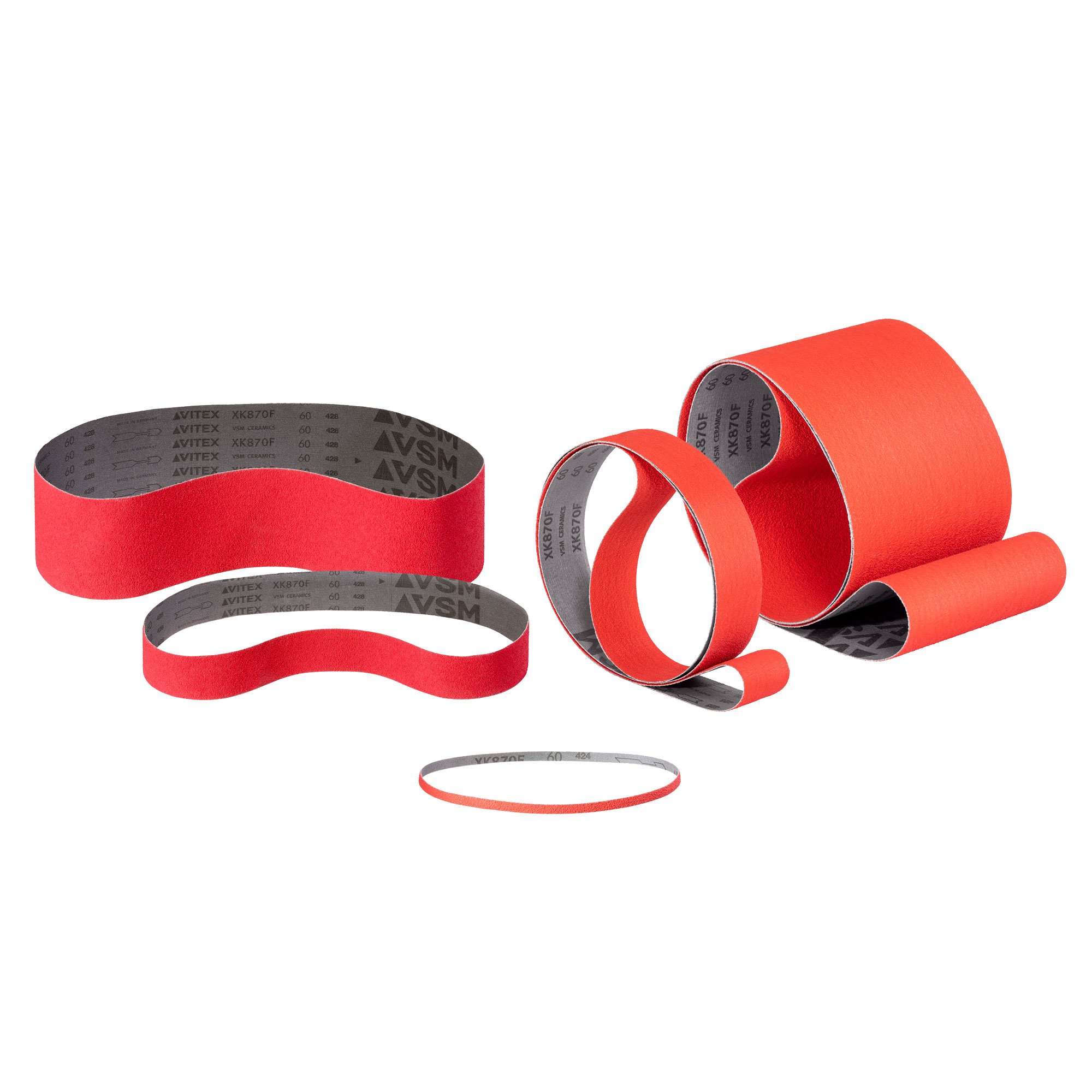 Das VSM Schleifband XK870F ist ein hochwertiges Schleifmittel mit Keramikkorn-Schleifmittel und einem Selbschärfungseffekt. Es eignet sich besonders gut für die Bearbeitung sehr harter Oberflächen, da es einen aggressiven Schliff bietet. Durch den Einsatz eines flexiblen Gewebeträgers hat das Schleifband zudem eine sehr lange Standzeit.
