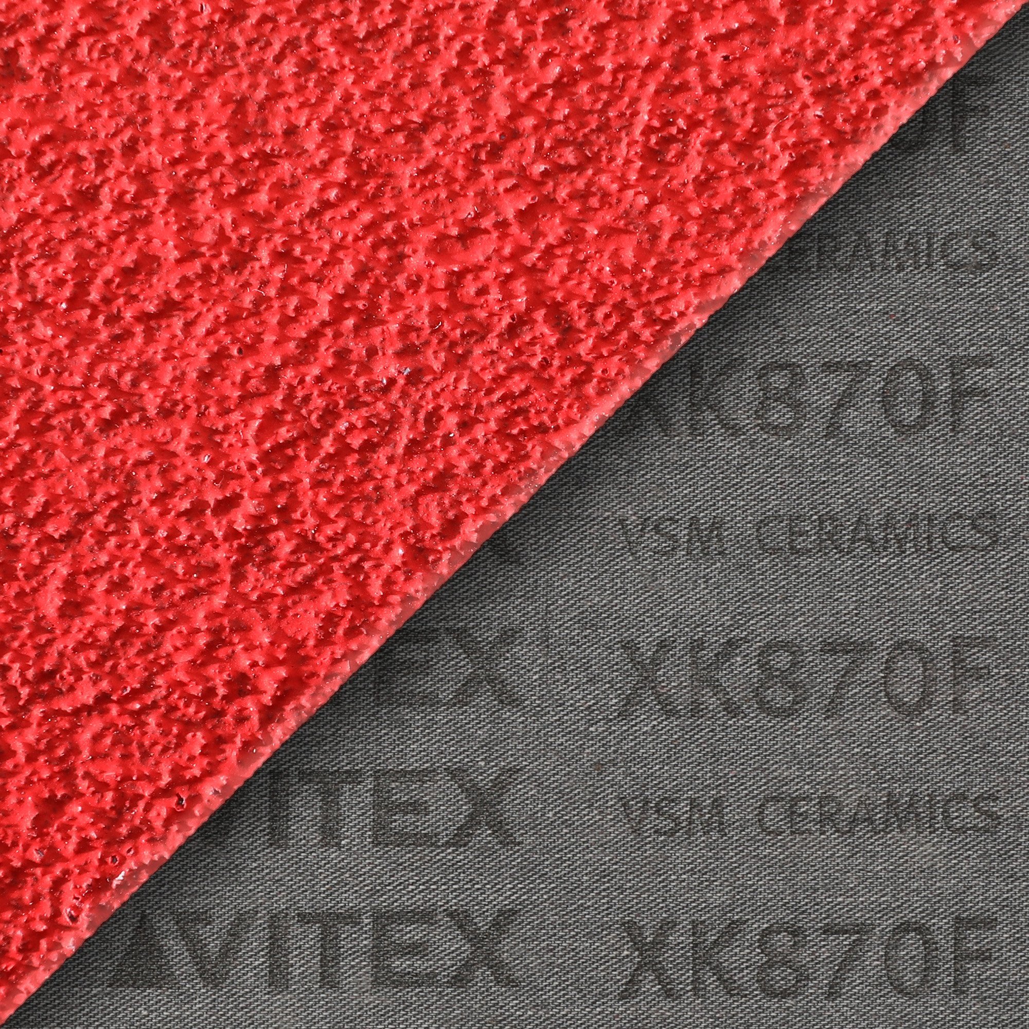 Ein besonderes Merkmal des VSM Schleifbands XK870F ist die schleifaktive Zusatzschicht TOP SIZE. Diese reduziert die Temperatur in der Schleifzone, was zu einer verbesserten Leistung und einer längeren Lebensdauer des Schleifbands führt.